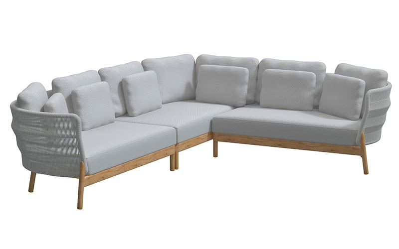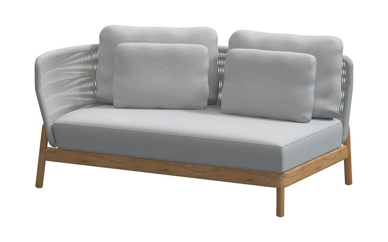 inkl. 5 Kissen, hellgrau • Material: Alu/Teak/Rope • H:85 B:170 T:95 SH:43