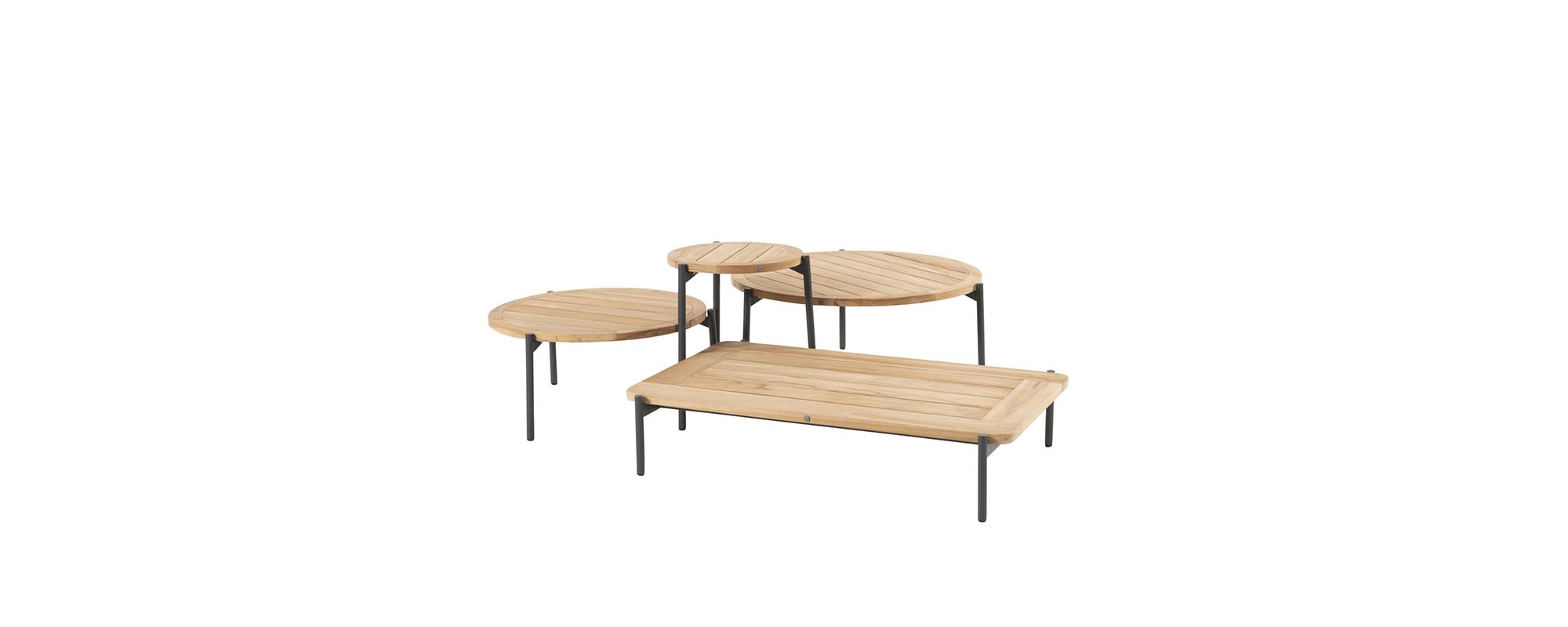 Teakoberfläche • Farben: Anthrazit und Frost Grau • rund • Material: Alu/Teak • H:35 D:73
