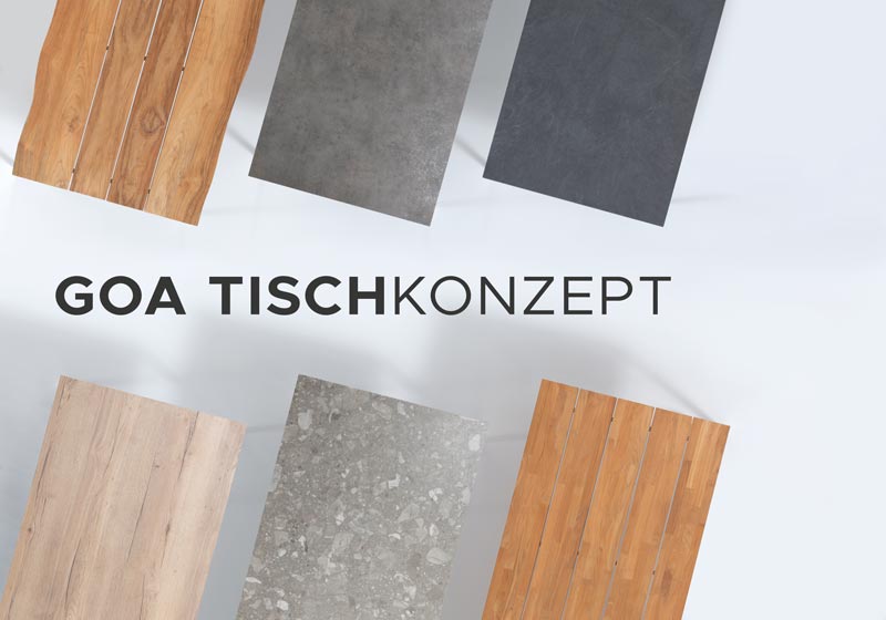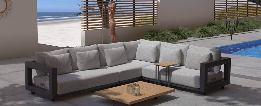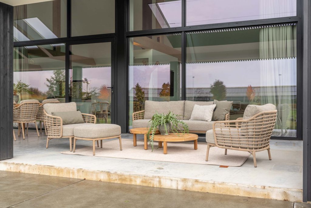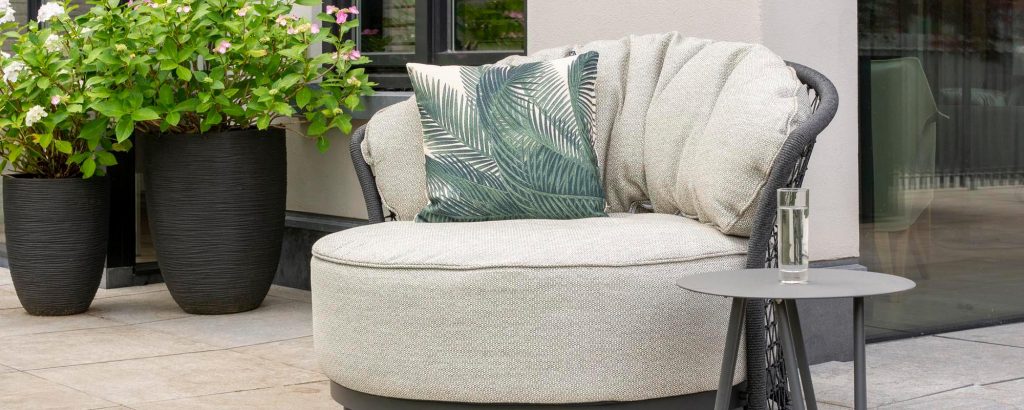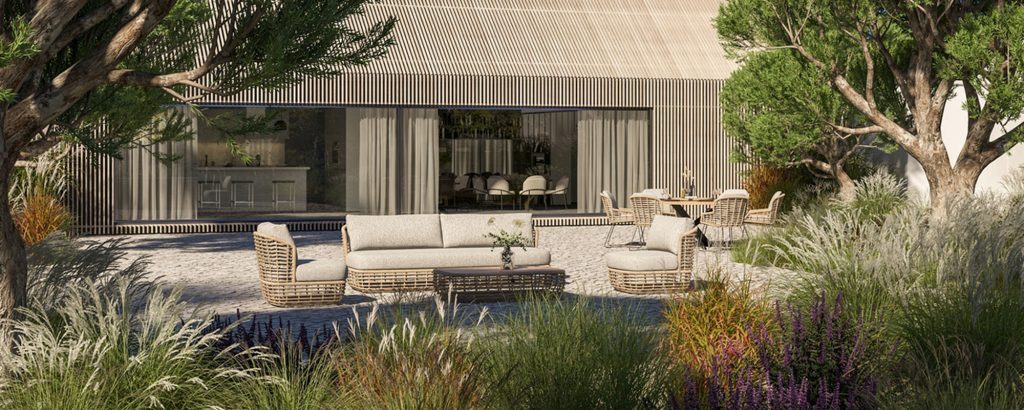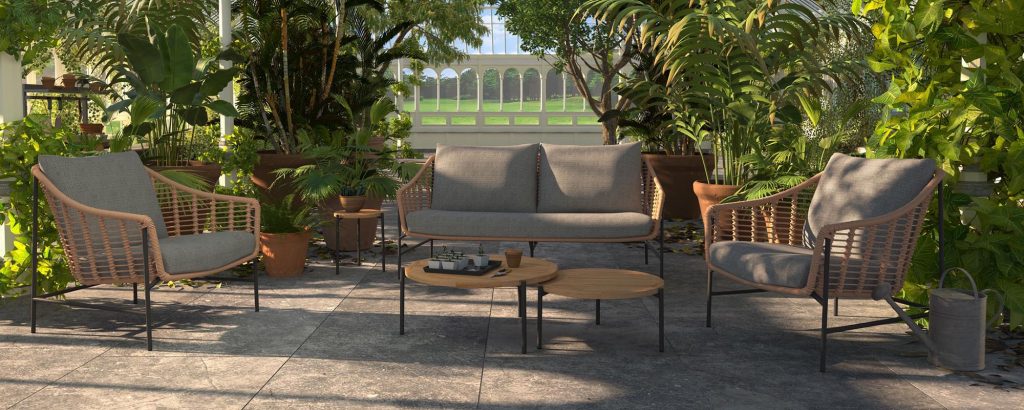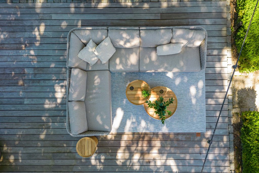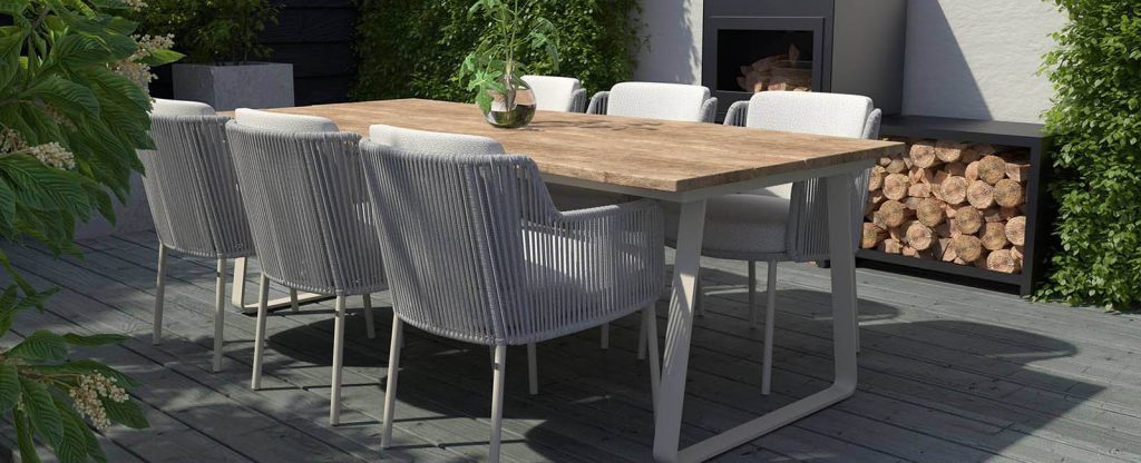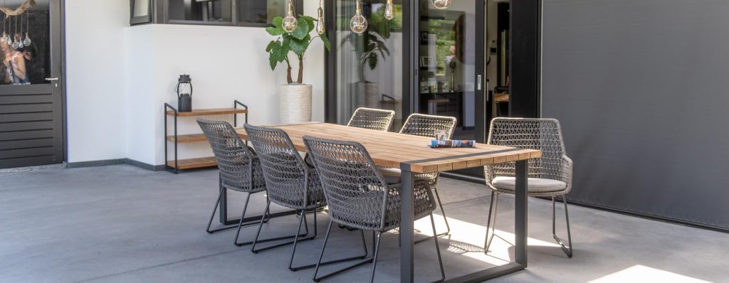 Übersicht unserer Gartenmöbel, Outdoor-Loungemöbel, Gartenstühle, Gartentische, Esstische für den Innenbereich und Sonnenschirme.